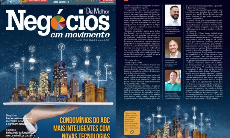 Cada vez mais presente no dia a dia, as inovações tecnológicas são uma mão na roda para facilitar rotinas administrativas e a comunicação entre as pessoas. No caso dos condomínios, ainda podem valorizar o patrimônio. Foi justamente esse o tema da matéria de capa da revista “Dia Melhor Negócios em Movimento”, de julho de 2021, na qual a MyVillage aparece como referência de empresa especializada em serviços destinados a condomínios, como portaria remota e integrada.
